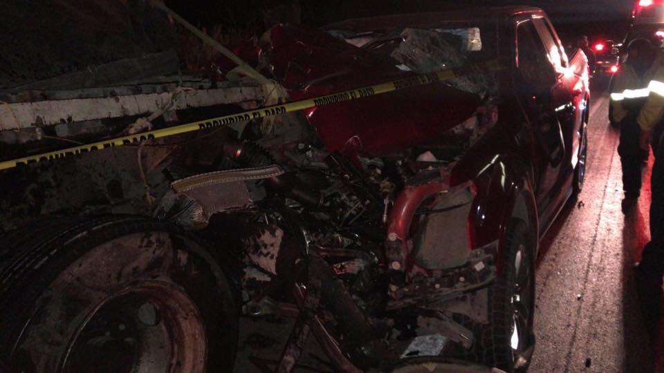 Las víctimas viajaba a bordo de una camioneta Ford Lobo, de la línea Platinum, de reciente modelo y con placas del Estado de Coahuila, la cual se incrustó debajo del camión de carga, quedando totalmente destrozada.