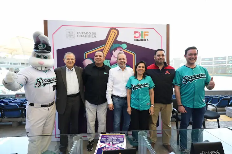 La Presidenta Honoraria del DIF Coahuila, Liliana Salinas Valdés, junto a directivos de los clubes Saraperos de Saltillo y Acereros de Monclova, anunció el Juego con Causa entre ambas novenas, a beneficio de los distintos programas del organismo, que tendrá lugar el lunes 8 de abril en el estadio Francisco I. Madero.