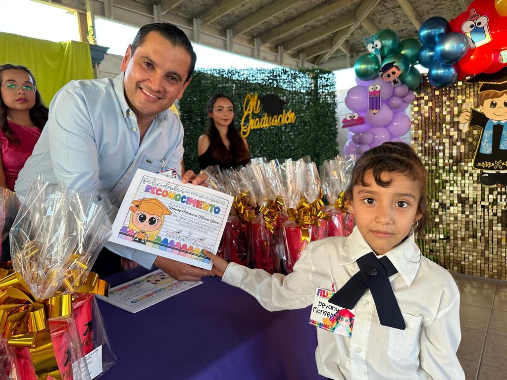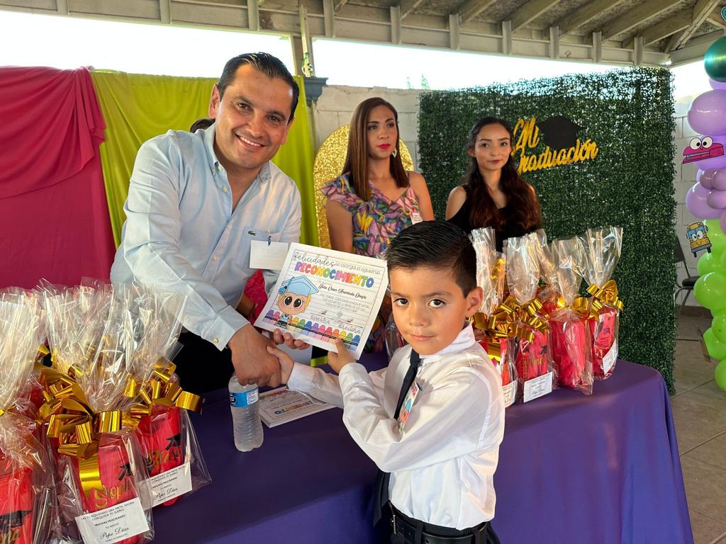 El alcalde José de Jesús Díaz Gutiérrez felicitó a los graduados y les hizo entrega de un obsequio consistente en una playerita y un vaso personalizado con el nombre de los niños. Además, como un regalo sorpresa más al esfuerzo dedicado, los invitó a disfrutar gratis una función de cine en los próximos días.