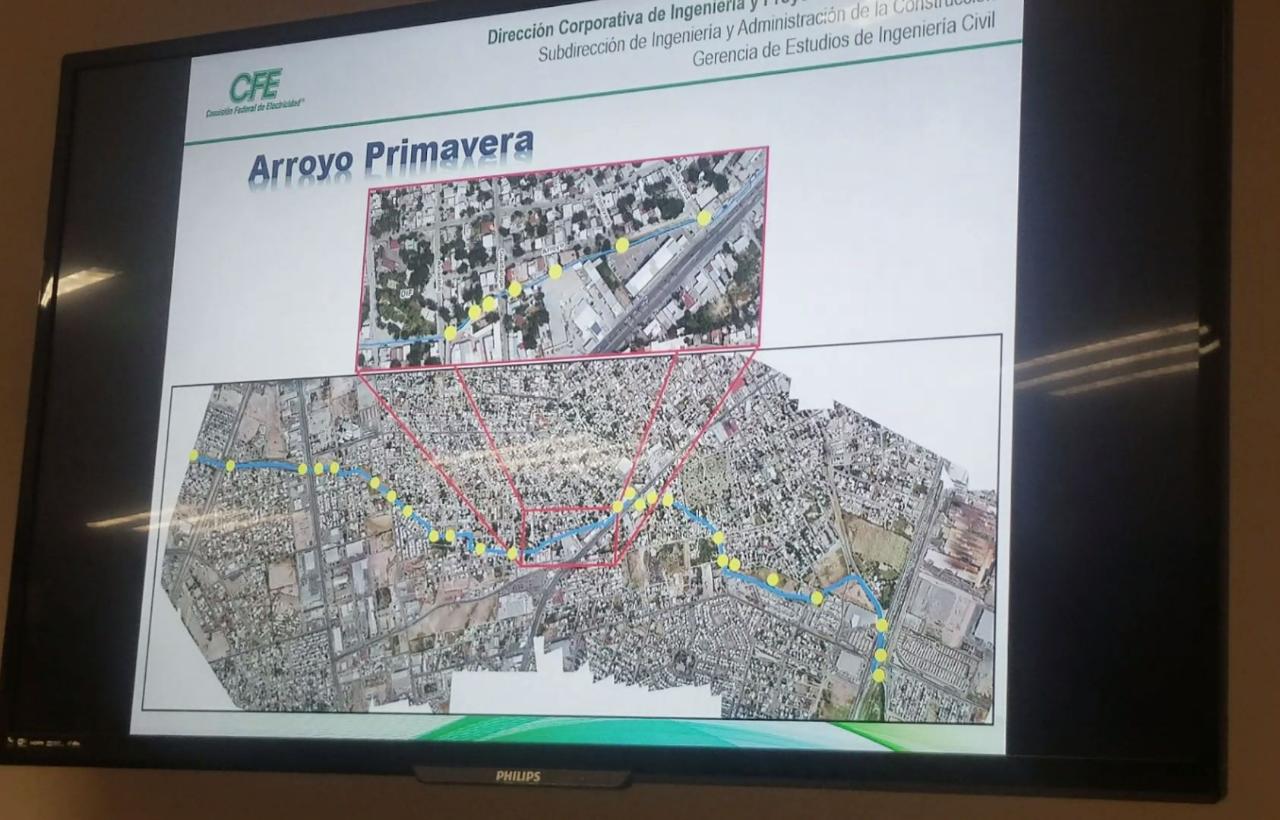 Lucy Carrillo | Piedras Negras, Coah.- Esta mañana Comisión Federal de Electricidad presento el estudio hidráulico del arroyo primavera en el que se analizó un modelo de inundación que abarca los 4.7 km de longitud de este afluente.