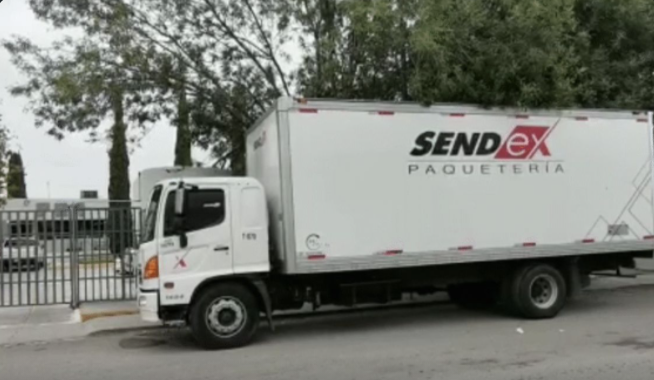 Se trata de un camión de la paquetería Sendex con número económico 070, el cual fue inspeccionado por un canino confirmando que existía un paquete sospechoso.