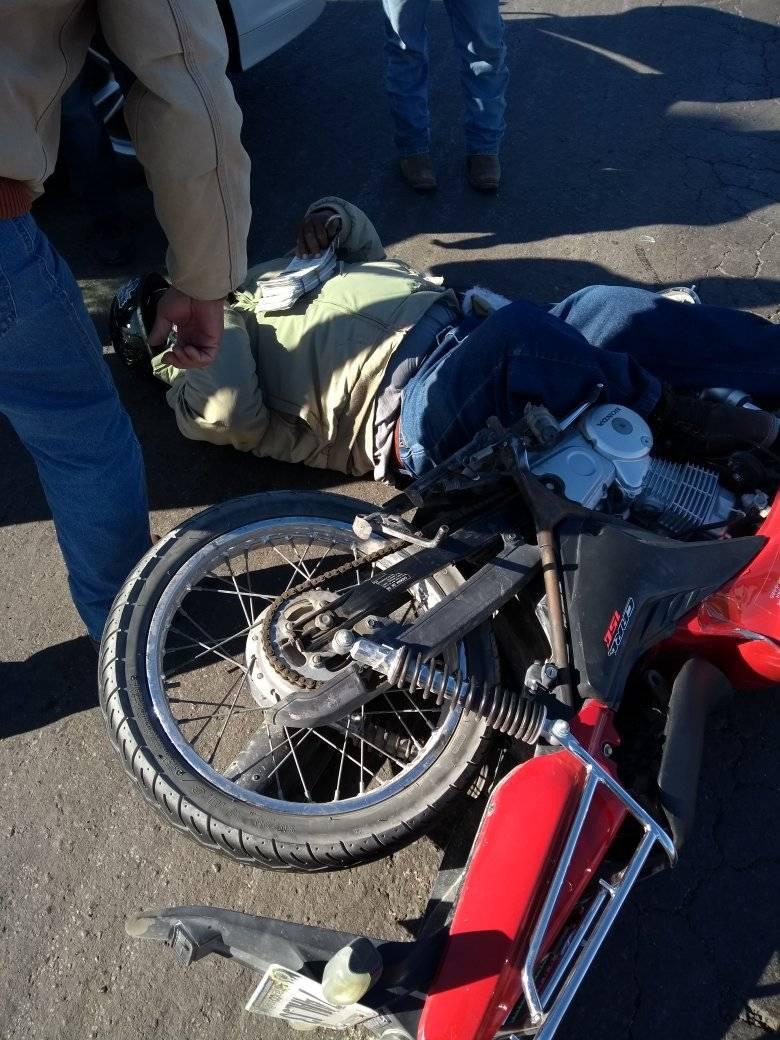 Raymundo Campos | Región Carbonífera.- Con diversas lesiones en el cuerpo resultó un motociclista que se desempeña como “Cobrador” de una negociación de Nueva Rosita, tras ser arrollado por el conductor de un automóvil.