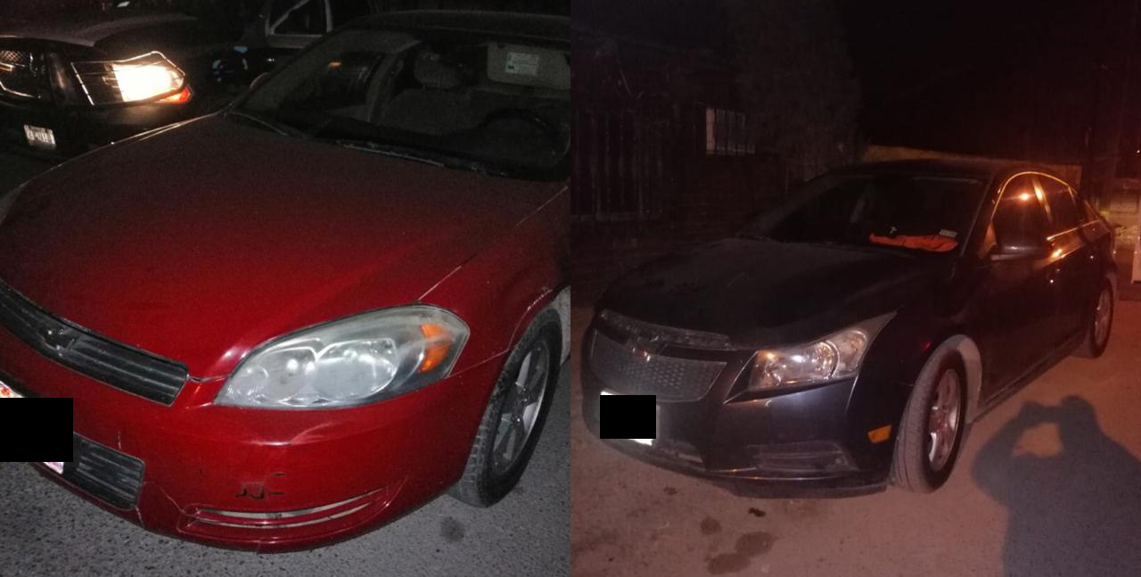 Primeramente un Chevrolet Cruze con placas del estado de Texas que tenía reporte de robo vigente en Estados unidos, y que fue ubicado en la colonia Bravo abandonado, luego de que fuera utilizado en varios atracos de esta localidad.