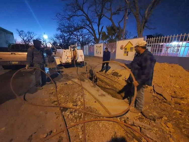 Luis Manzano | Zaragoza Coah.- Personal de SIMAS, apoyados por el personal de Bomberos y Protección Civil, auxiliaron a un jardín de niños que presentaba una problemática con las aguas negras en los sanitarios.