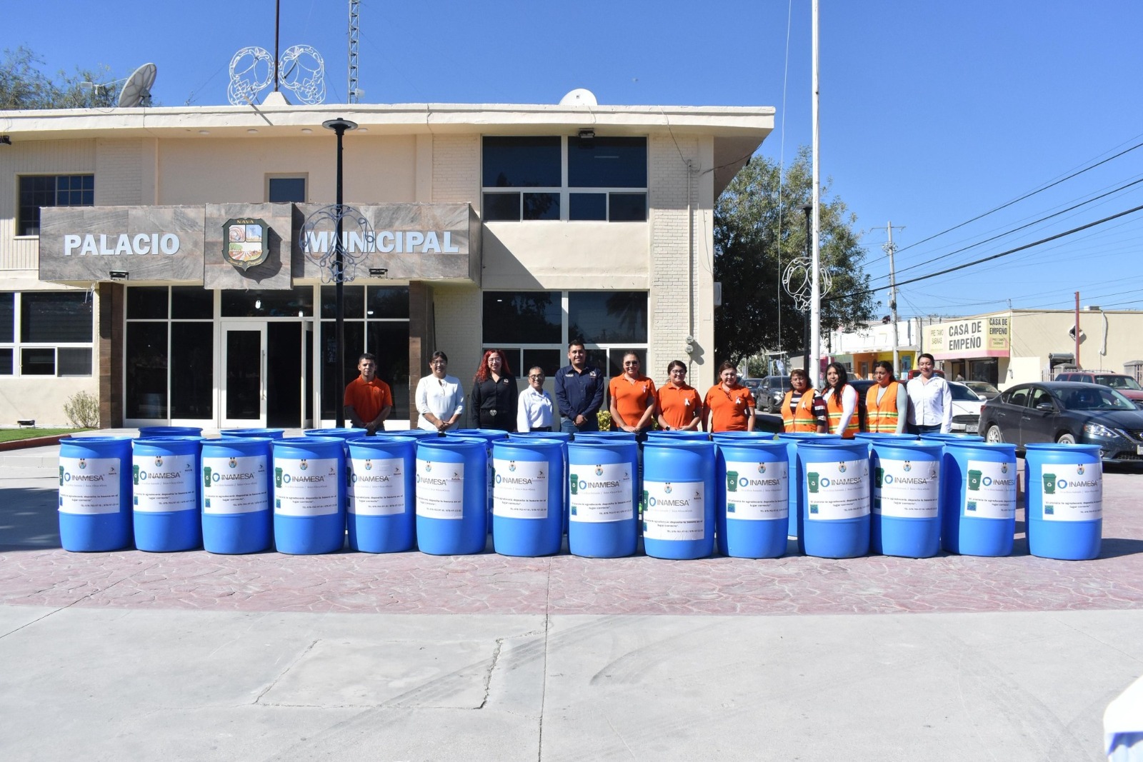 Nava, Coahuila.- Como parte de las acciones para fortalecer la educación ambiental en las escuelas, el municipio de Nava recibió la donación de 25 tambos de reciclaje por parte de la empresa INAMESA, comprometida con el cuidado del medio ambiente.