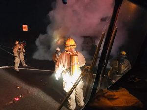 El incendio se originó después de que fallo la transmisión del vehículo, segun manifestaron los tripulantes.
