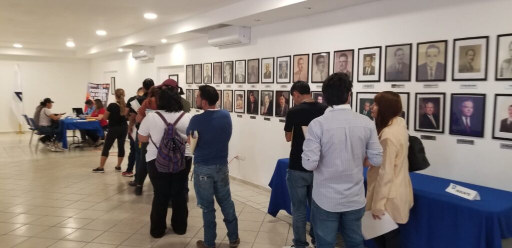 Piedras Negras, Coahuila.- Tras haberse suspendido por temas de logística la Feria del Empleo convocada por CANACO durante marzo, esta actividad nuevamente se retomó con la afluencia de poco más de 130 buscadores, quienes desde temprana hora acudieron a las instalaciones de la cámara en búsqueda de una vacante.