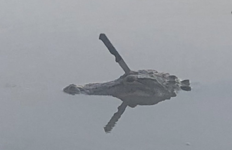 Redacción.- Se ha viralizado en redes sociales una desconcertante imagen que muestra a un caimán con un cuchillo incrustado en la cabeza mientras atraviesa un lago del condado de Fort Bend, estado de Texas.