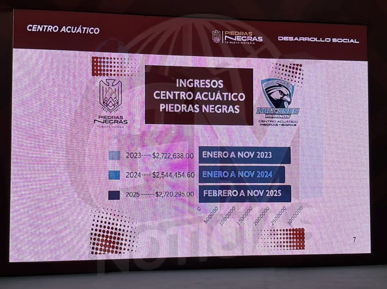 Daniel Herrera | Piedras Negras, Coahuila; 4 de diciembre de 2025. — El Centro Acuático de Piedras Negras cerró el periodo de febrero a noviembre de 2025 con una recaudación de 2 millones 720 mil 295 pesos, de acuerdo con el informe presentado por el Director del recinto, José Manuel Rodríguez Santos.