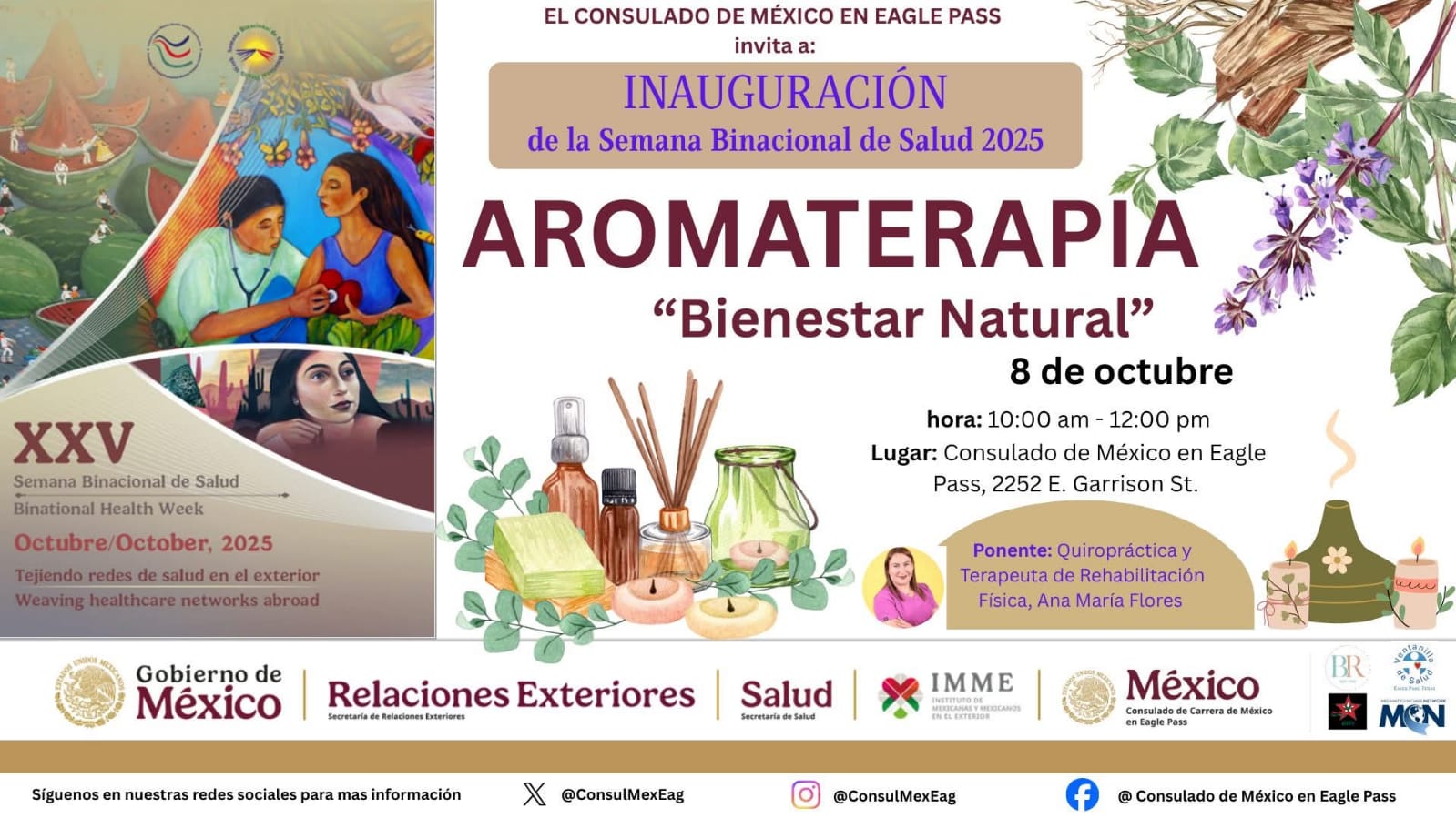 Eagle Pass, Texas.- La red consular de México en Estados Unidos tendrá a lo largo de todo octubre diversas actividades en lo que han denominado como el mes de la salud, bajo el eslogan tejiendo redes de salud en el exterior, iniciando con una sesión de aromaterapia en las instalaciones de la sede consular.
