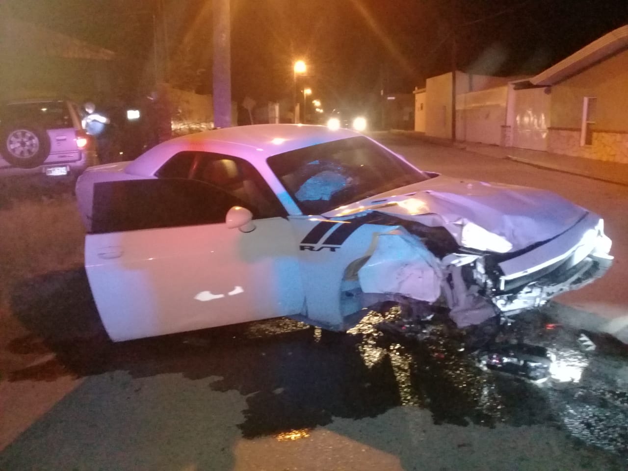 El conductor responsable de una camioneta Passport Rodeo gris impactó un vehículo deportivo Dodge Challenger 2012 en color blanco.