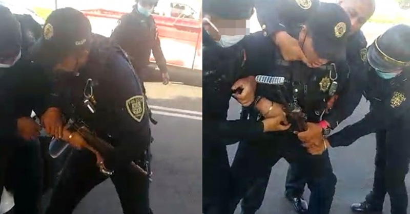 Sin embargo, los uniformados comenzaron a forcejear y a agredir a los supervisores, quienes solicitaron apoyo por su frecuencia de radio para realizar la detención de los efectivos por su probable falta a los protocolos de actuación policial.