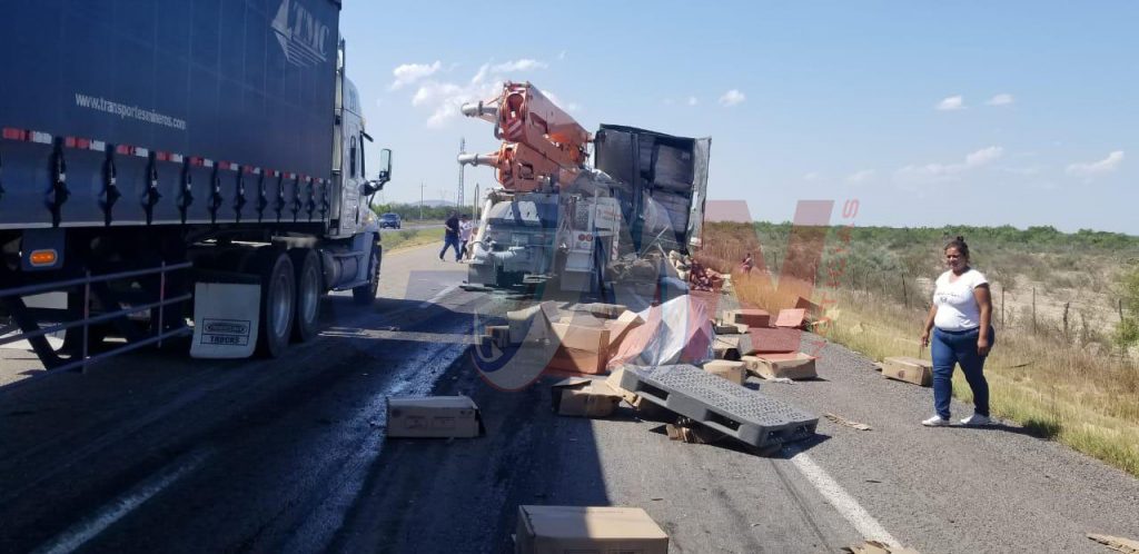 En el percance murieron dos personas, luego de estrellarse un camión con grúa para el concreto contra un trailer de carga.