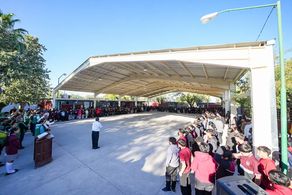 Sonia Villarreal, Subsecretaria de Gobierno en la Región Norte, indicó que en esta obra fue invertido 3 millones 200 mil pesos, beneficiando a más de 650 alumnos, quienes podrán realizar diversas actividades al aire libre, protegiéndolos de las inclemencias del clima de la región.