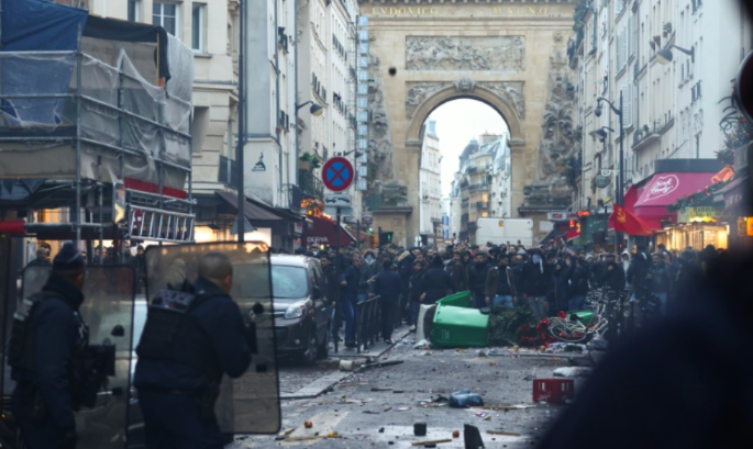Los incidentes empezaron cuando los manifestantes se enfrentaron a un cordón policial que protegía al ministro francés del Interior, Gérald Darmanin, quien acudió al lugar para dar a la prensa algunos detalles de la investigación en curso.
