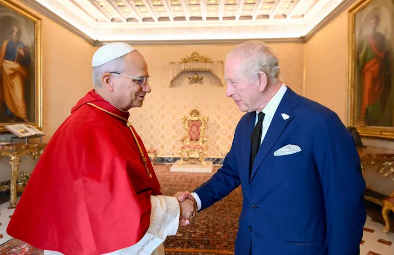 Los reyes Carlos III y Camila de Inglaterra rezaron con el Papa León XIV en una visita histórica al Vaticano para forjar una relación más estrecha entre la Iglesia de Inglaterra y la Iglesia católica.