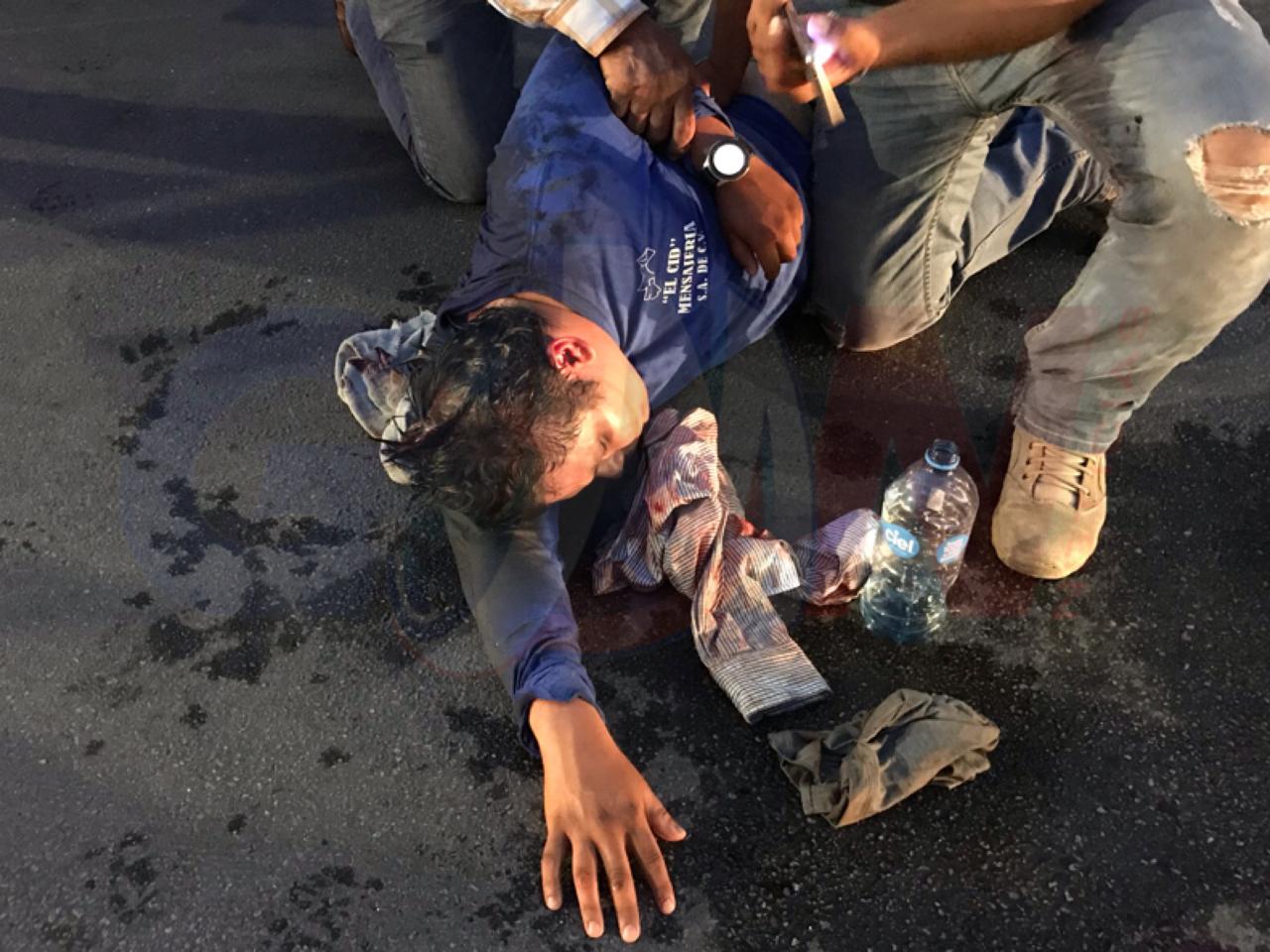 Totalmente inconsciente, con el cuero cabelludo levantado, las masas craneoencefálicas a la vista, ademas de sangrar por la boca y el oído, terminó un repartidor de dicha negociación al ser impactado por un automóvil de la marca Audi en color negro, en el cruce de la callé Mexicali y Av Carranza.