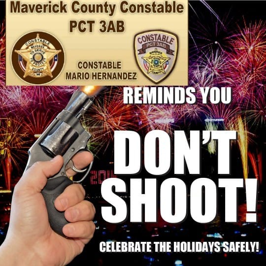 Ricardo Bueno | Eagle Pass, Tx.- Un llamado muy importante es el que realiza las autoridades del condado de Maverick pidiendo a la población el abstenerse de lanzar disparos al aire, resaltando que es una practica muy riesgosa que puede ocasionar lesiones graves y hasta la muerte.