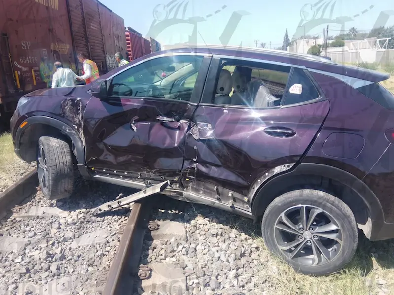 Se trata de una unidad Buick Encore, color morado con placas de Texas; de acuerdo a los reportes, fue arrastrada más de 15 metros y pese a lo aparatoso del percance, los ocupantes resultaron ilesos, mientras que el vehículo presentó daños totales en el costado izquierdo.