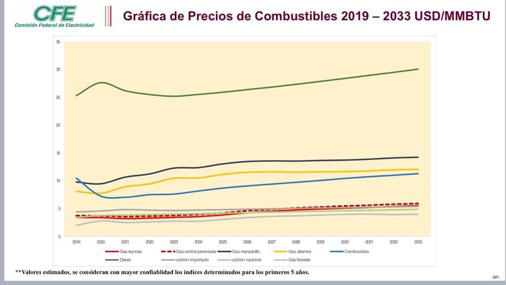 Raymundo Campos I Región Carbonífera, Coah En una gráfica filtrada desde una de las oficinas gubernamentales de la Comisión Federal de Electricidad(CFE) se observan los precios de los combustibles en el país, durante este año.
