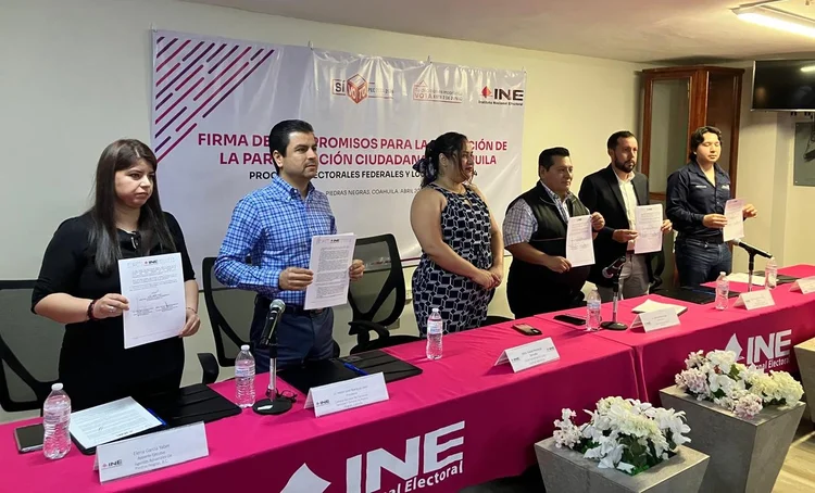 Ricardo Bueno | Piedras Negras, Coah.- Teniendo el firme objetivo de vencer al abstencionismo en las elecciones próximas, se firmó un convenio de colaboración entre el INE y el sector comercial, industrial y ciudadano para la promoción del voto.