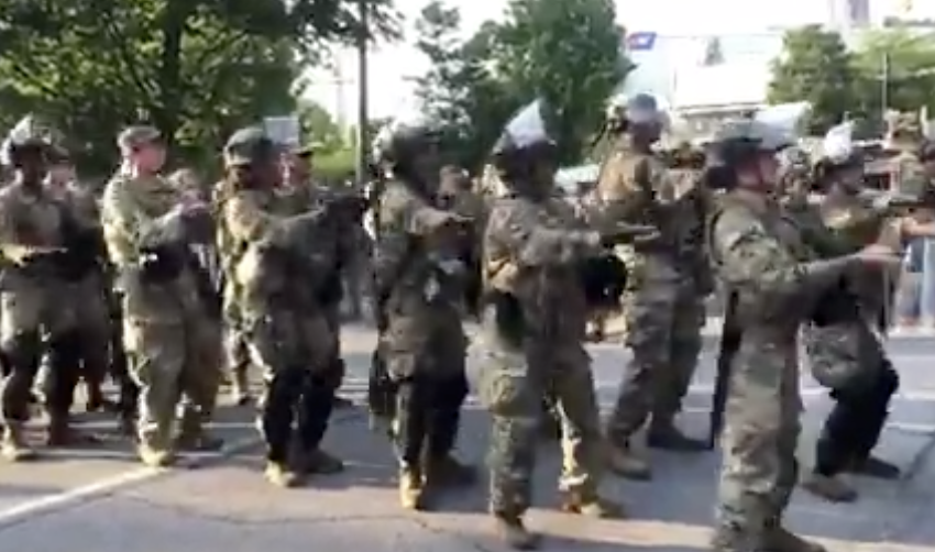 Miembros de un grupo de la Guardia Nacional fueron captados haciendo el famoso baile en un video publicado por Jenny Jarvie, corresponsal de Los Angeles Times en Atlanta.