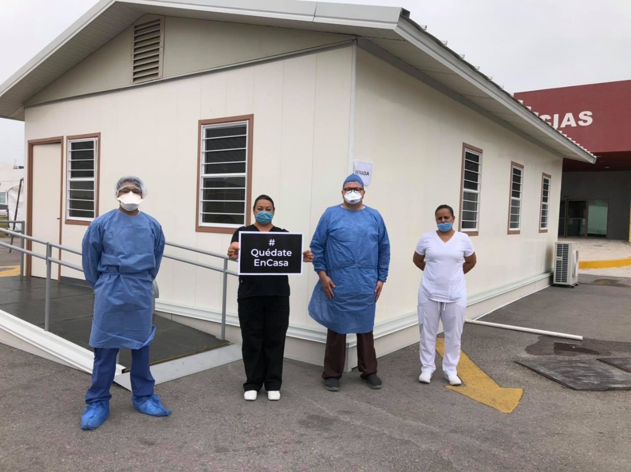 Ricardo Bueno | Piedras Negras, Coah.- Tras los trabajos que se realizaron para retirar las lonas donde al inicio se estaría atendiendo a todo paciente sospechoso de coronavirus en el estacionamiento del Hospital General, Salvador Chavarría, esta área fue adecuada por medio de unos consultorios.