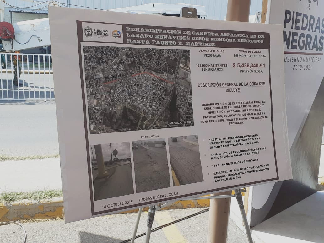 Lucía Carrillo | Piedras Negras, Coah.- Con una inversión de 5,436,340.91 pesos se dio el arranque de la rehabilitación de la carpeta asfáltica en Doctor Lázaro Benavides partiendo de Bulevar Mendoza Berrueto hasta Fausto Z. Martínez.