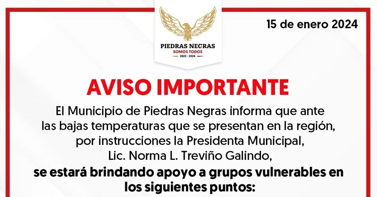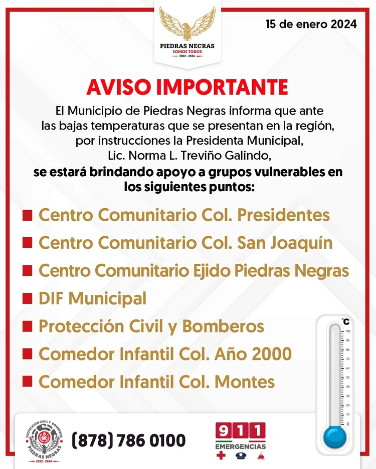 Ricardo Bueno | Piedras Negras, Coah.- Con la finalidad de apoyar a la comunidad durante la tormenta invernal que estará azotando a la región, el DIF municipal habilitó siete puntos en los que la comunidad puede acudir a solicitar ayuda, estando preparados para proporcionar cobertores.