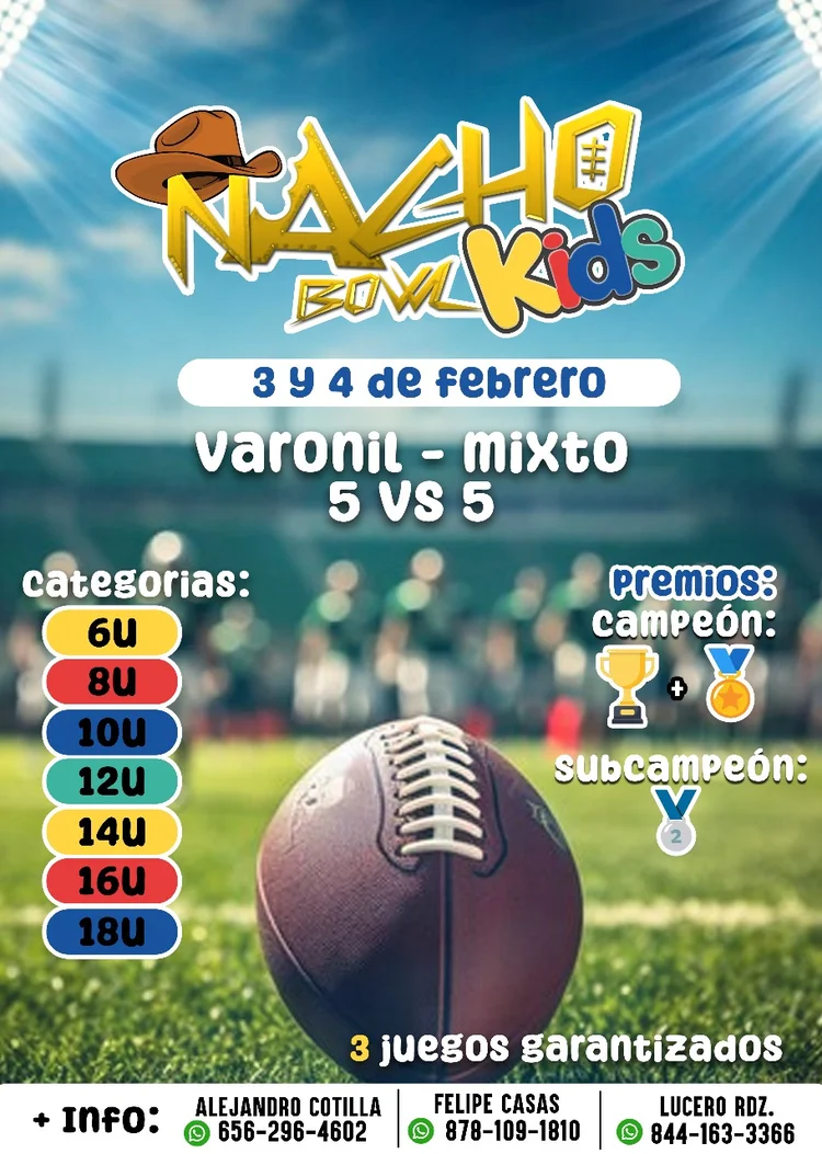 Ricardo Bueno | Piedras Negras, Coah.- Durante el presente fin de semana se tendrá la segunda edición del Nacho Flag Football Kids, con la participación de equipos como Chapulines y el club Águilas.