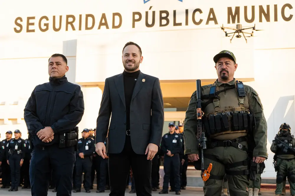 El alcalde Jacobo Rodríguez acudió a las instalaciones de la Dirección de Seguridad Pública Municipal para llevar a cabo el tradicional pase de revista, acompañado del Comisario Cruz Eliud Mercado, comandante de Seguridad Pública.