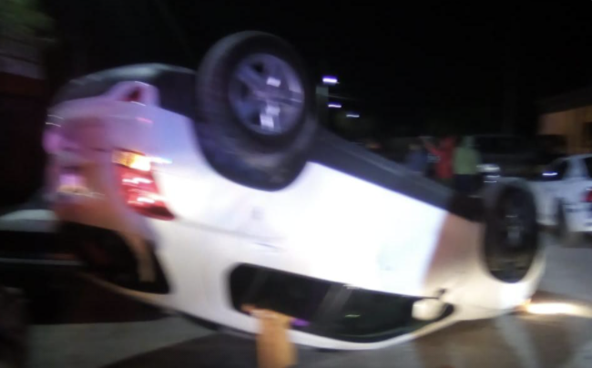 Debido al exceso de velocidad, trató de esquivar a otro vehículo, y al volantear terminó volcada sobre su toldo; de manera milagrosa resultó ilesa.