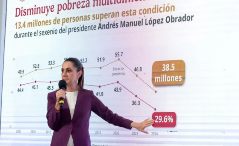 La Presidenta de México, Claudia Sheinbaum, afirmó que la pobreza en el país se encuentra en su nivel más bajo de los pasados 40 años gracias al modelo de desarrollo de la Cuarta Transformación y criticó a quienes se niegan a reconocerlo.