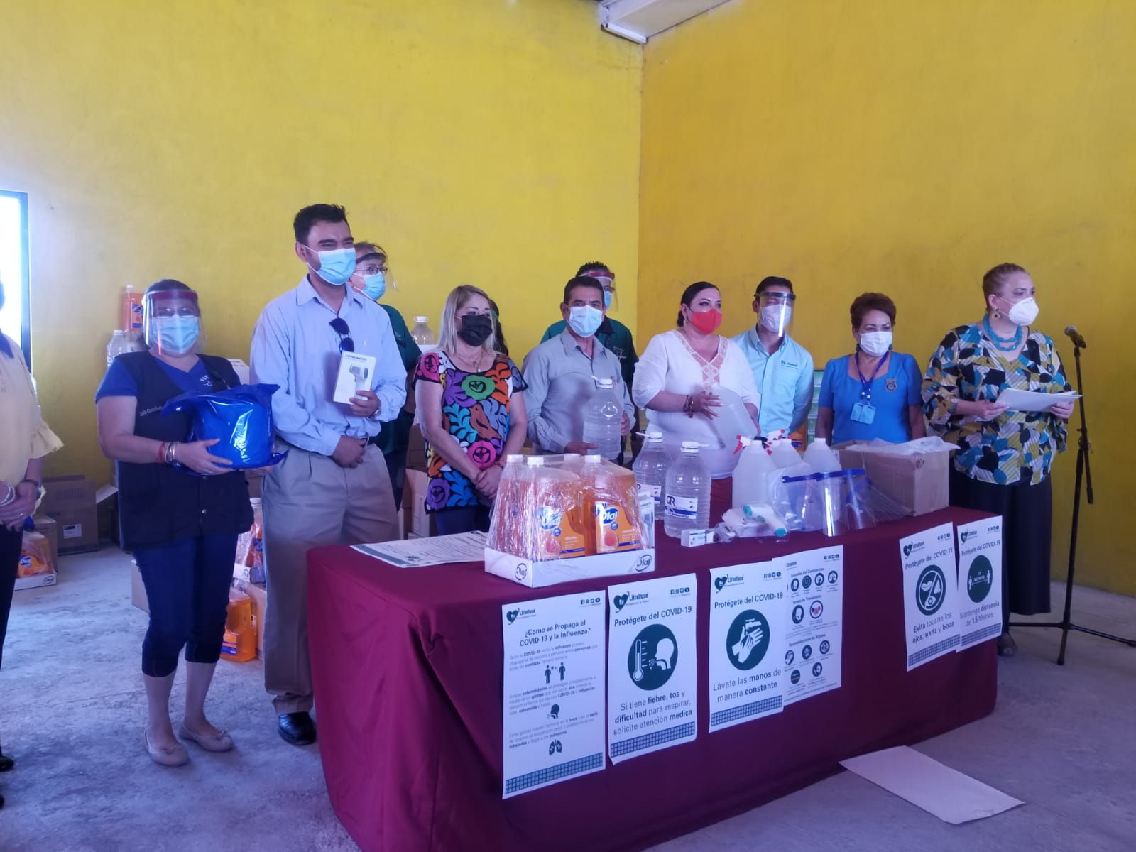El evento fue encabezado por la señora Irene Chapa, presidenta honoraria de la dependencia, Mirtala Barrera Tamez, directora de Bienestar Social Municipal asicomo del representante de Littelfuse Misael Ramos y la presidenta de Rotarios María Reyes Macías quienes destacaron la importancia de mantener el apoyo a las escuelas para que los niños, adolescentes, jóvenes y maestros puedan regresar a clases de una forma segura.
