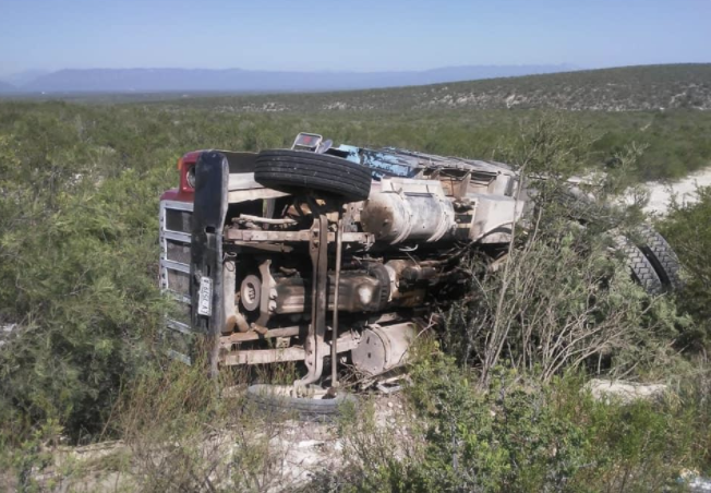 Raymundo Campos|Múzquiz, Coah.- Un camión de carga tipo “Torton” fue localizado esta mañana volcado y abandonado por su operador.