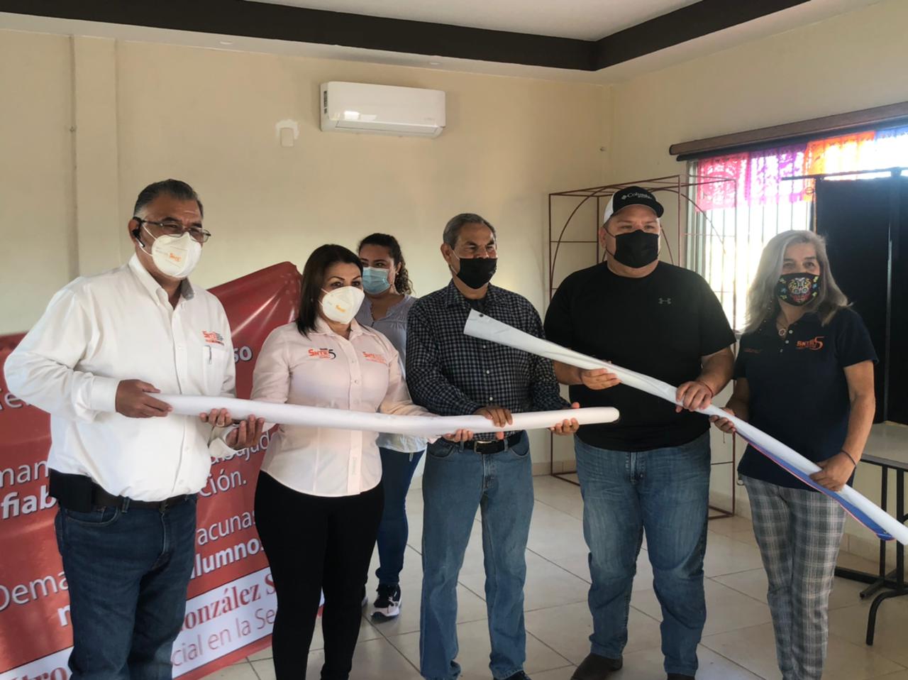 Raymundo Campos|Nueva Rosita, Coah.- La Dirigencia de la Sección Cinco del Magisterio en Coahuila, coloco mantas en escuelas públicas de la Región Carbonífera y en el edificio sindical, en reclamo al Gobierno de la República para que autorice la aplicación de una vacuna anticovid confiable para los trabajadores de la educación.