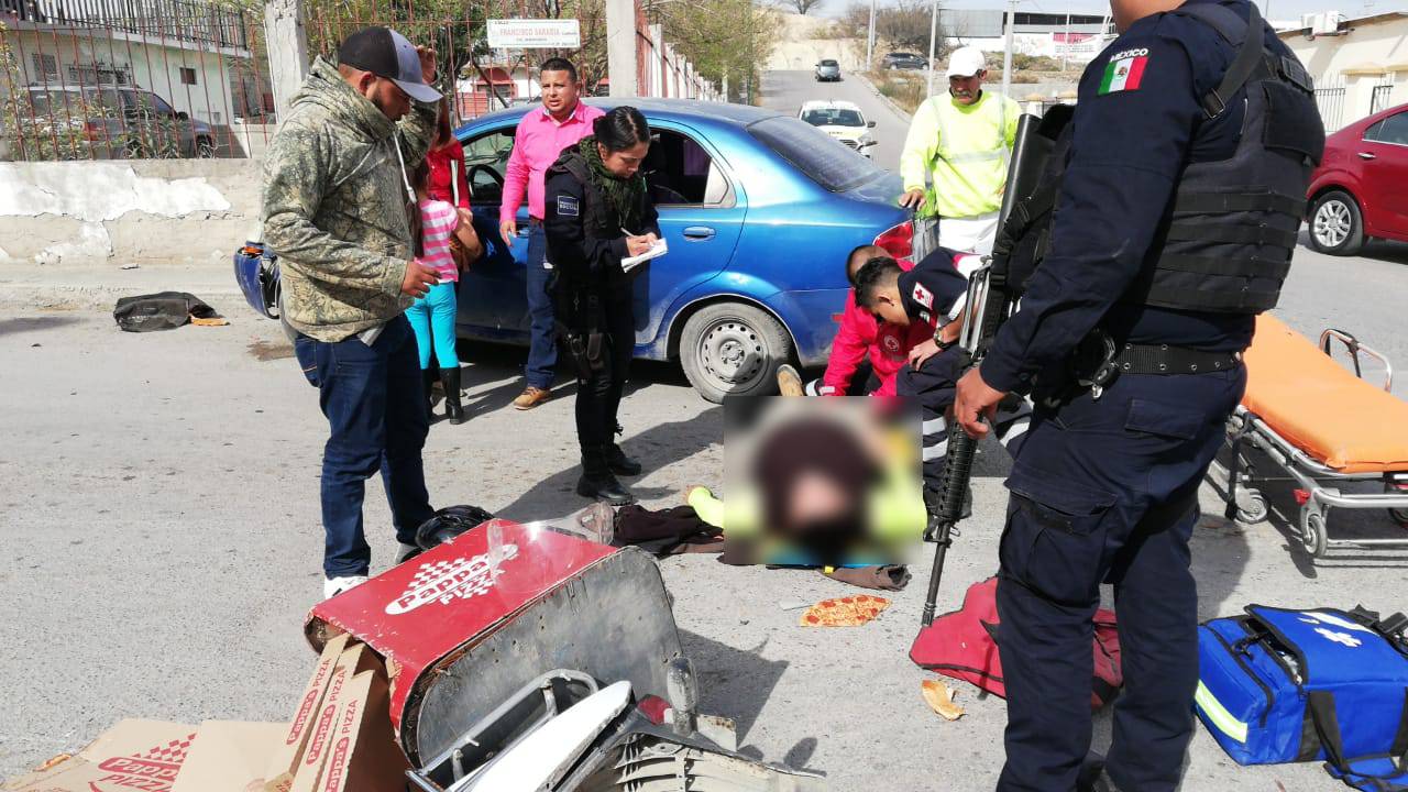 Dicha conductora que circulaba a bordo de un Chevrolet Aveo 2005 en color azul y se identificó como Exal Villalobos Cruz de 31 años de edad, al llegar al cruce se le atravesó al paso a un repartidor de pizza en una motocicleta Honda modelo 2015 en color gris, quien responde al nombre de Pablo Jesús Rodríguez Cuellar de 23 años de edad.