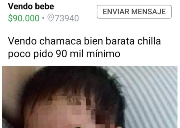 A través de un grupo de ventas en Facebook, una mujer ofreció a su hija de tres meses de edad a cambio de recibir 90 mil pesos “mínimo”, en un bazar de Puebla, en la zona de Teziutlán y Atempan.