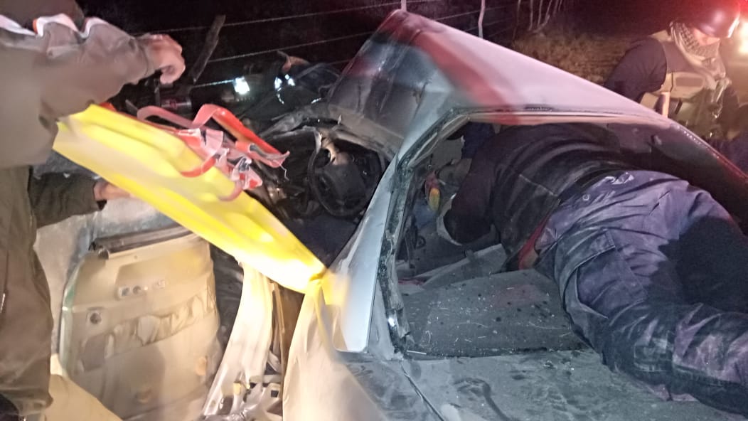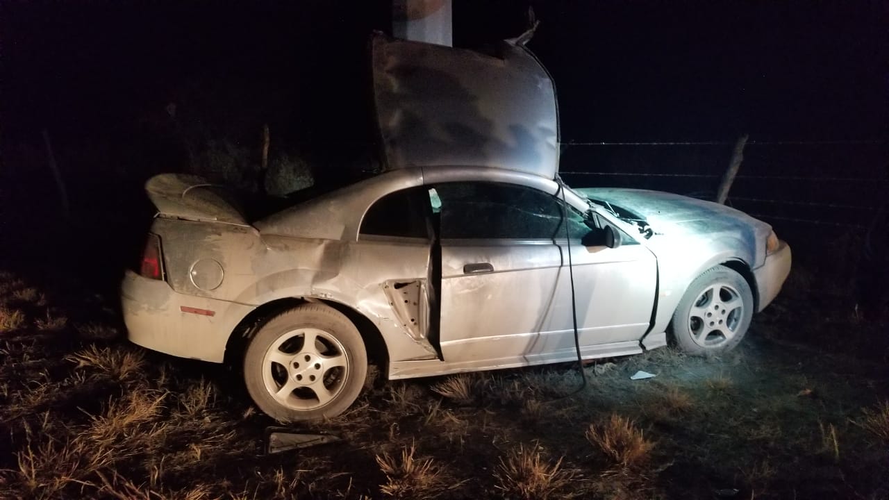 Al arribar al lugar los elementos policiacos y rescatistas, se percataron de un automóvil Mustang color gris con placas del Estado de Texas, que se encontraba completamente destrozado, tras el impacto que sufrió contra un poste de CFE, ubicado a un costado del tramo carretero.