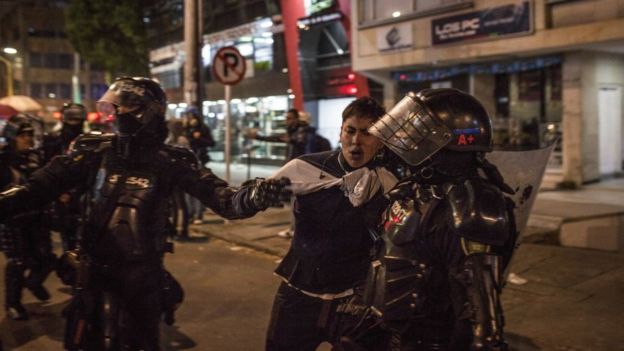 El paro nacional que se inició este jueves en Colombia en contra del llamado “paquetazo de Duque” ha estado precedido de allanamientos a organizaciones sociales y fuerte presencia de los cuerpos de seguridad del Estado en las calles, lo que ha sido catalogado por sus organizadores como “tratamiento de guerra, persecución y criminalización de la protesta”.