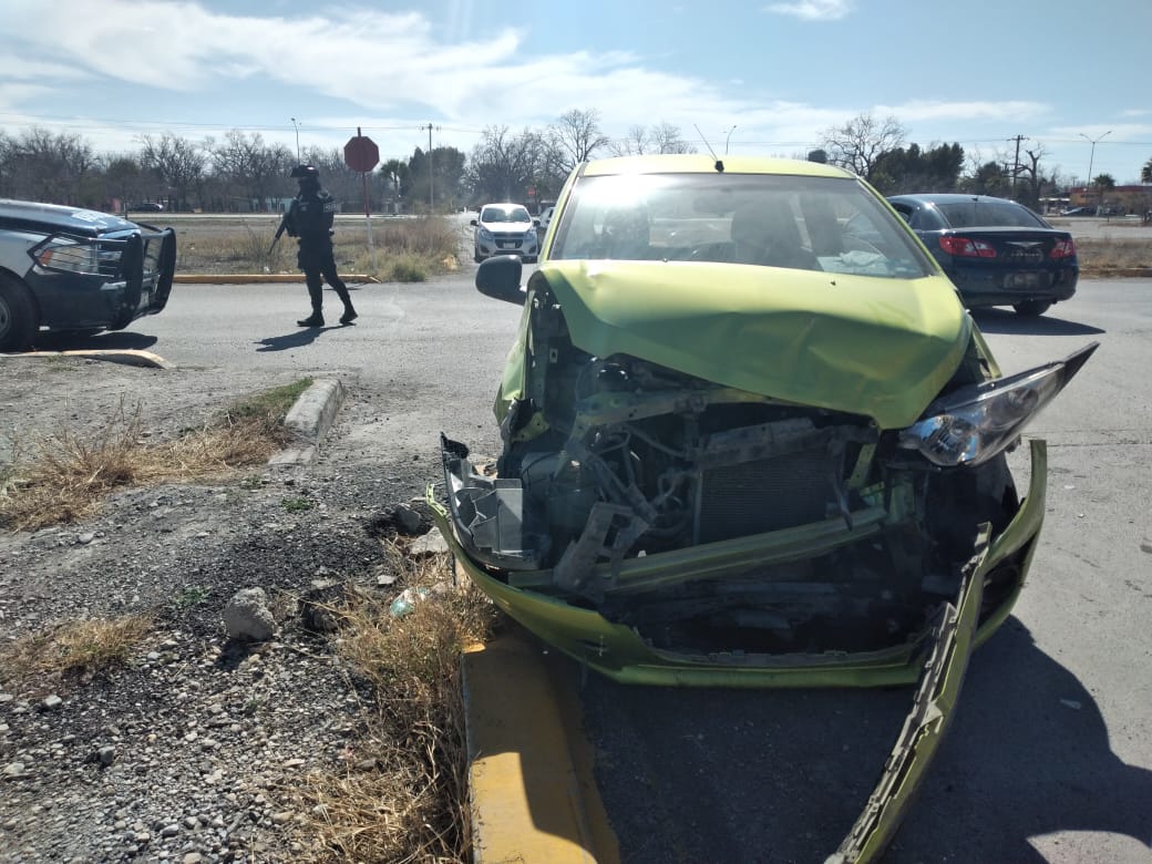 El vehículo afectado y que terminó con la parte frontal destrozada se trata de un Chevrolet Spark en color verde de reciente modelo, con placas del Estado de Coahuila.