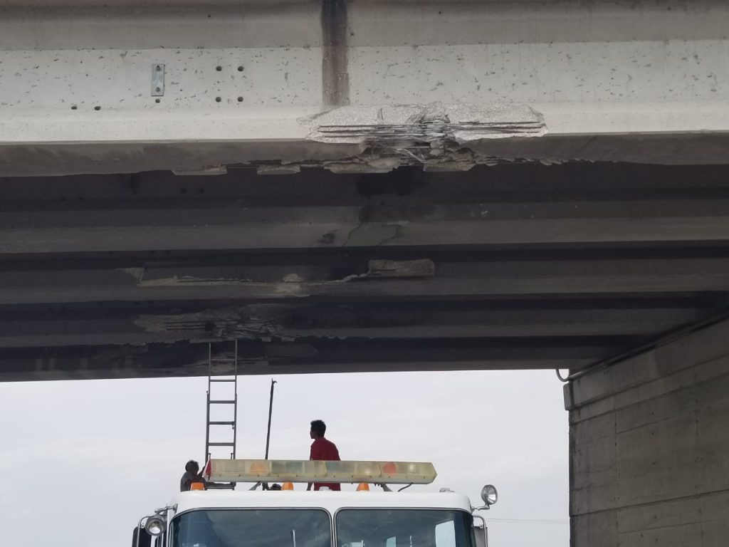 El resultado del golpe fue de incontables daños en la parte de abajo de la estructura del puente y también en la máquina retro excavadora se dañaron unas líneas y el brazo.