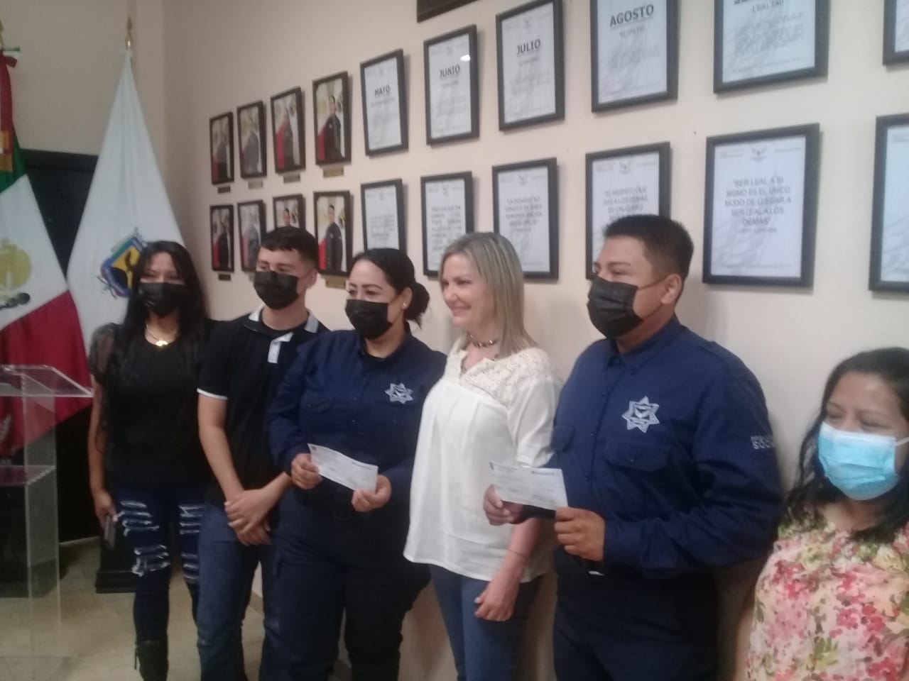 Ambos en compañía de sus familiares colocaron su fotografía en la galería de honor del policía del mes que se tiene destinado a la entrada del edificio de Seguridad Publica para reconocer el trabajo de los oficiales que son acreedores a tal distinción, recibiendo un estímulo económico de cinco mil pesos.