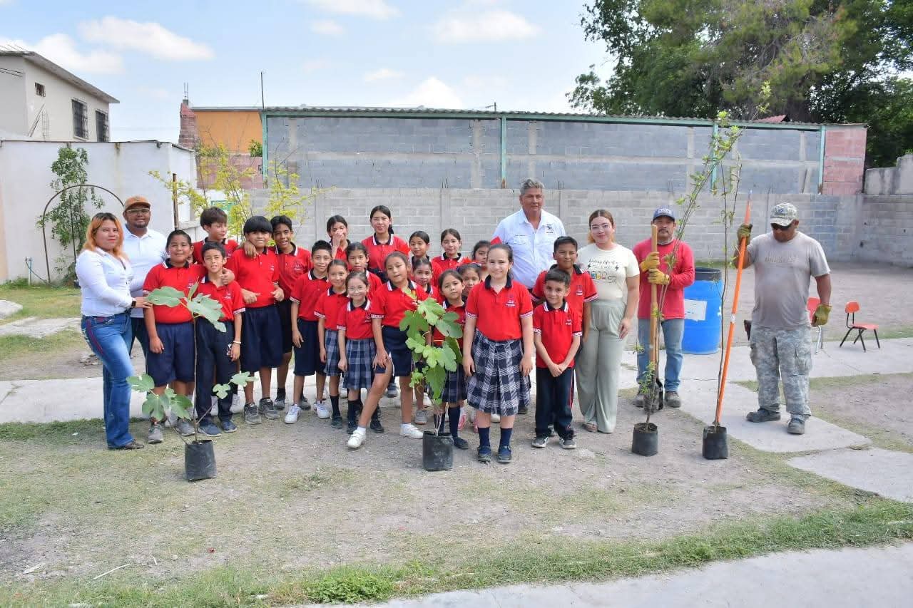 Nava, Coahuila.- En un ambiente de entusiasmo y participación, alumnos del Colegio De Las Américas realizaron la plantación de árboles de higuera y durazno, como parte de una donación hecha por el Departamento de Ecología.