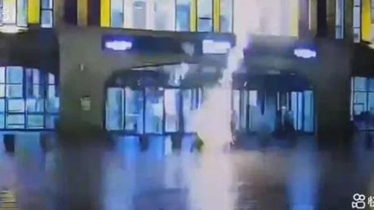 El momento del impacto fue grabado por las cámaras de vigilancia. En el video se puede ver a dos personas caminando por la plaza frente a la estación con paraguas y equipaje cuando de repente un rayo los alcanza, produciendo una gran cantidad de chispas, y ambos caen instantáneamente al suelo.