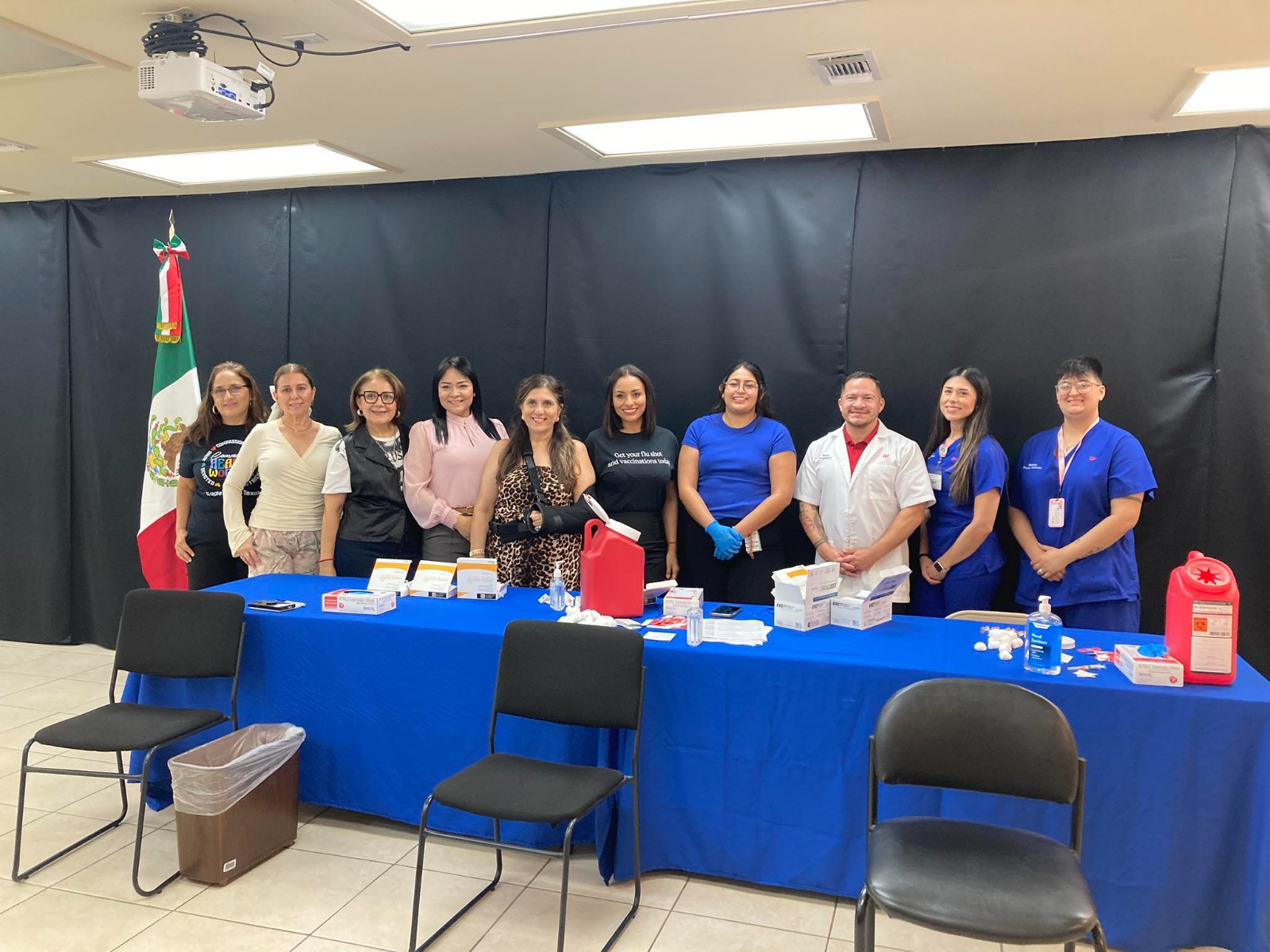 Eagle Pass, Texas.- Con el apoyo de distintas organizaciones de salud, se realizó una campaña de vacunación en el Consulado de México en Eagle Pass, referente a ofrecer a la comunidad la protección contra la influenza, resaltando la relevancia de estar protegido ante la temporada invernal que se avecina.