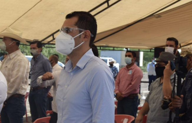 El alcalde de Nava Sergio Zenón Velázquez Vázquez acudió esta mañana a presenciar la colocación de la primer piedra del cuartel militar en el Ejido Santa Monica.