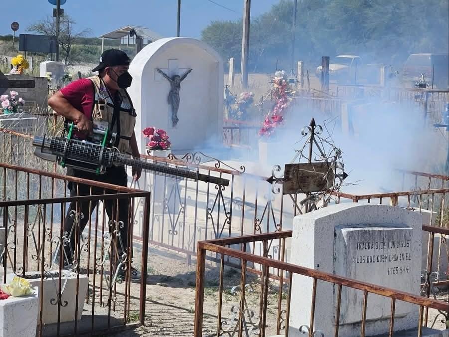 Zaragoza, Coahuila.- En vísperas del Día de Muertos, el Presidente Municipal Mario Gonsalez Vela informó que, en coordinación con la Jurisdicción Sanitaria No. 01 de Piedras Negras, a través de la Coordinación Municipal de Salud y la Dirección de Ecología, se llevaron a cabo labores de fumigación y abatización en los panteones Rosales, Gigedo y del Ejido Charcos.