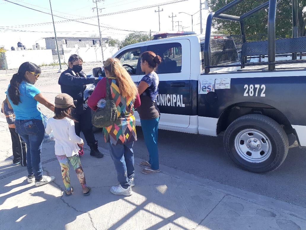 Raymundo Campos | Región Carbonífera.- Elementos del Mando Único Policial de Sabinas, distribuyeron una cantidad importante de cubrebocas, entre los habitantes de la colonia Valle Dorado, que colinda con el poblado de Barroteran.