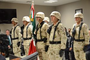En su mensaje en representación del Gobernador, José Luís Pliego Corona, destacó el trabajo que se realiza para mantener la seguridad en Coahuila, resaltando que la entidad ocupa el octavo lugar dentro de las más seguras y la numero uno de los estados del norte, mientras que Piedras Negras se encuentra en la posición ocho y la numero de las ciudades fronterizas con mayor seguridad.